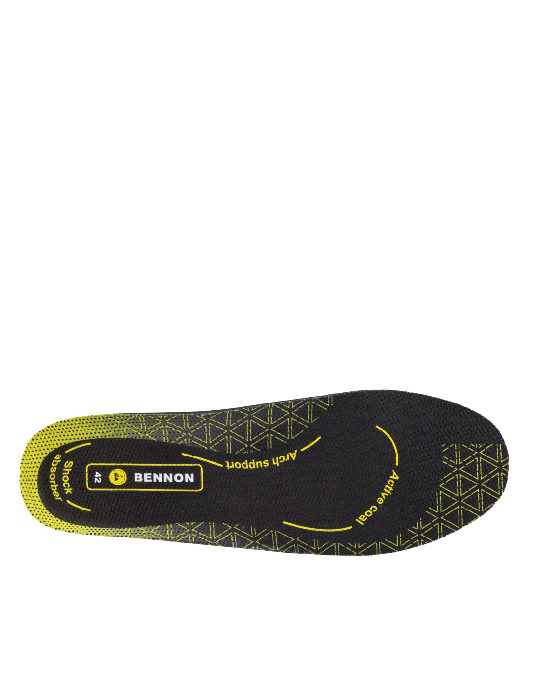Anatomicznie ukształtowana wkładka, zapewnia podparcie łuku poprzecznego i podłużnego stopy. W obszarze pięty znajduje się miękka wyściółka, która jest amortyzatorem dla kości piętowej. Dzięki aktywnemu węglowi wkładka absorbuje pot i pochłania nieprzyjemny zapach. Cechy te zwiększają komfort noszenia obuwia. Wkładka nadaje się do aktywnego środowiska pracy.