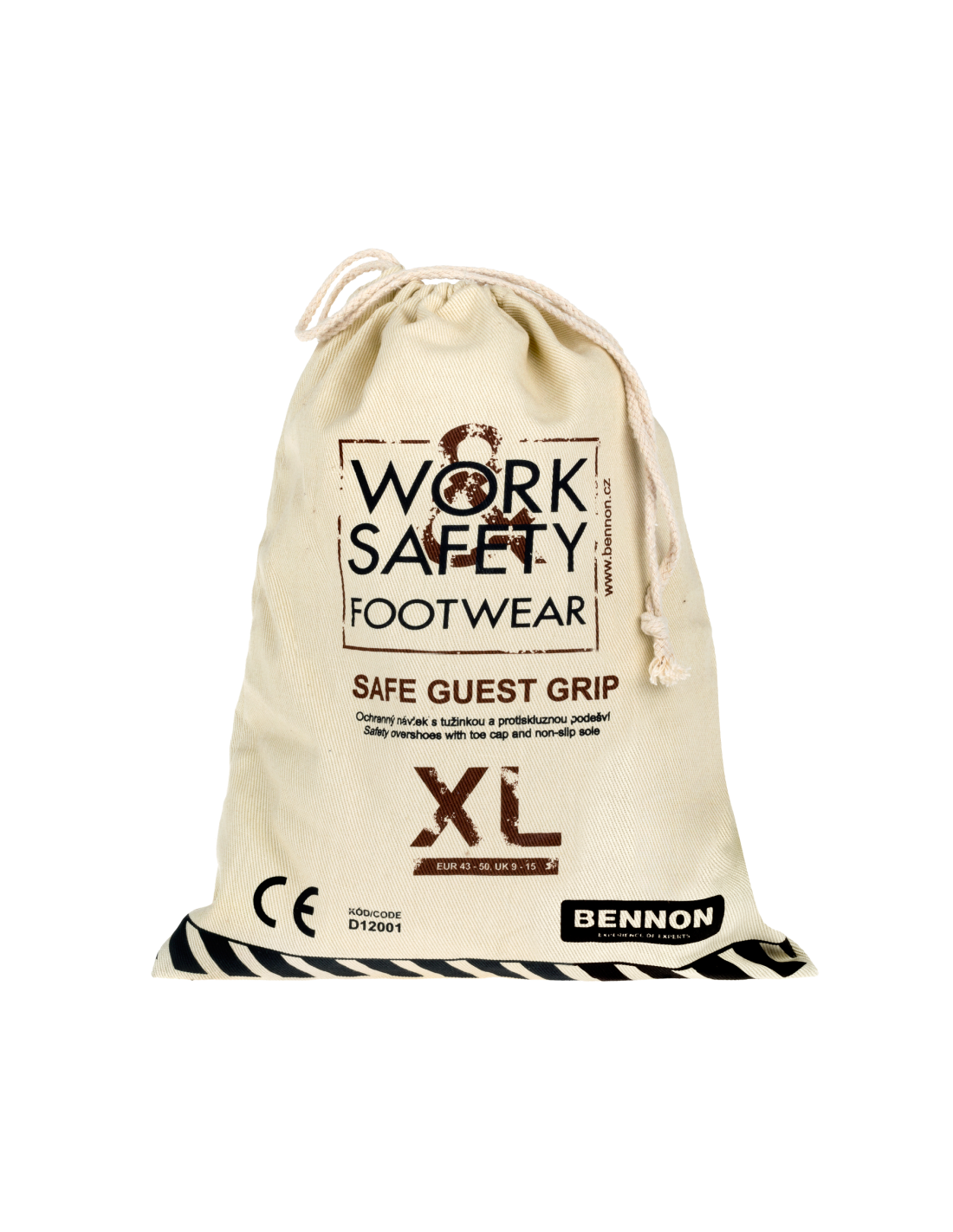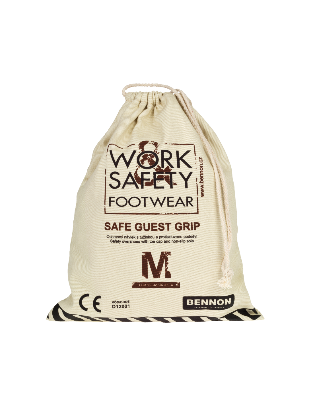 Ochronna, gumowa nakładka na obuwie z metalowym podnoskiem i regulowanym zapięciem (rzep) na piętę; przeznaczona dla gości wizytujących firmę lub pracowników. Rozmiar: M: 36-42 (żółty), XL: 43-50 (pomaranczowy)