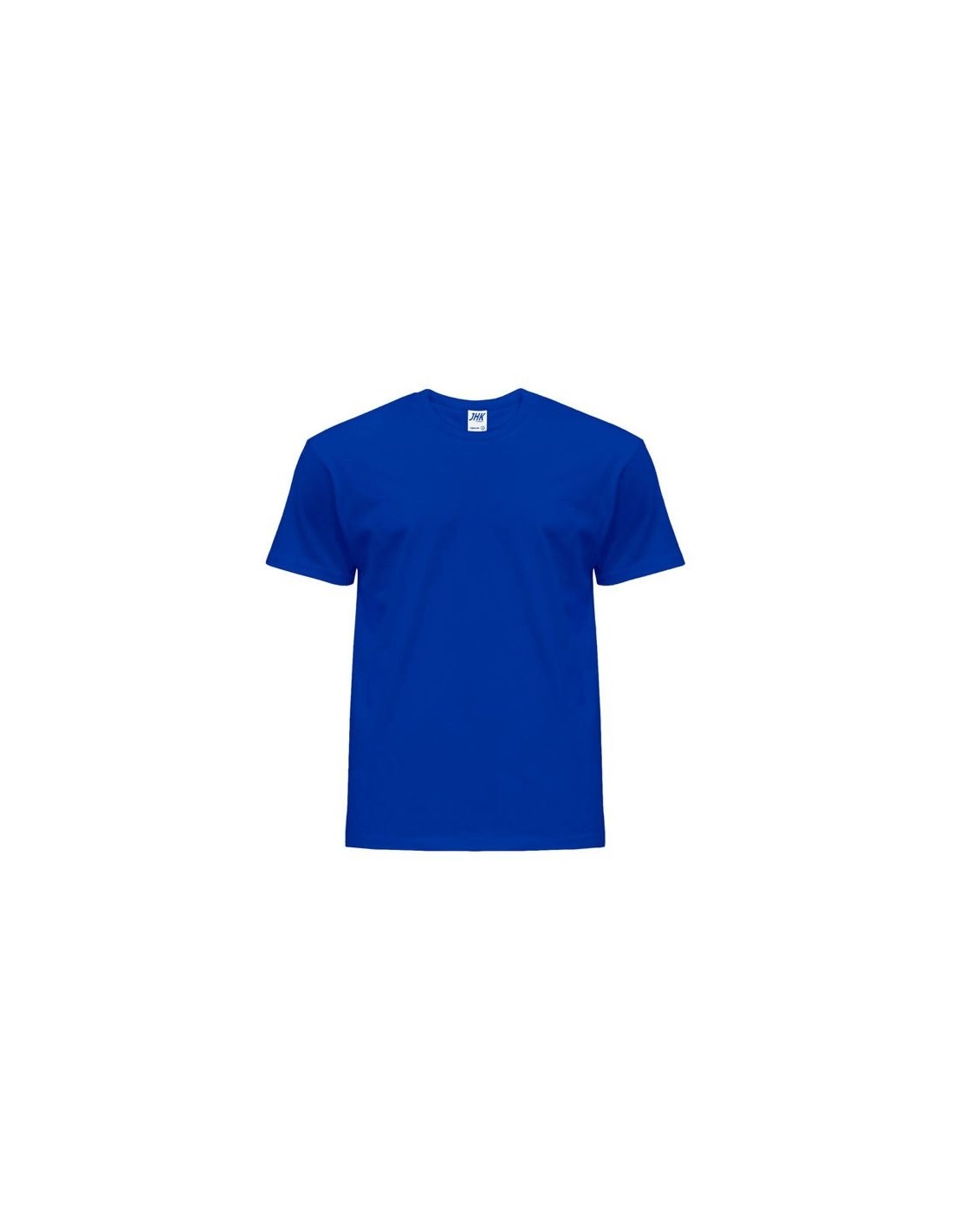 T-shirt męski z krótkim rękawem. Brak bocznych szwów. Podwójne szwy na ramionach. Wzmocniony lycrą ściągacz. Taśma wzmacniająca. 100% bawełna stabilizowana.