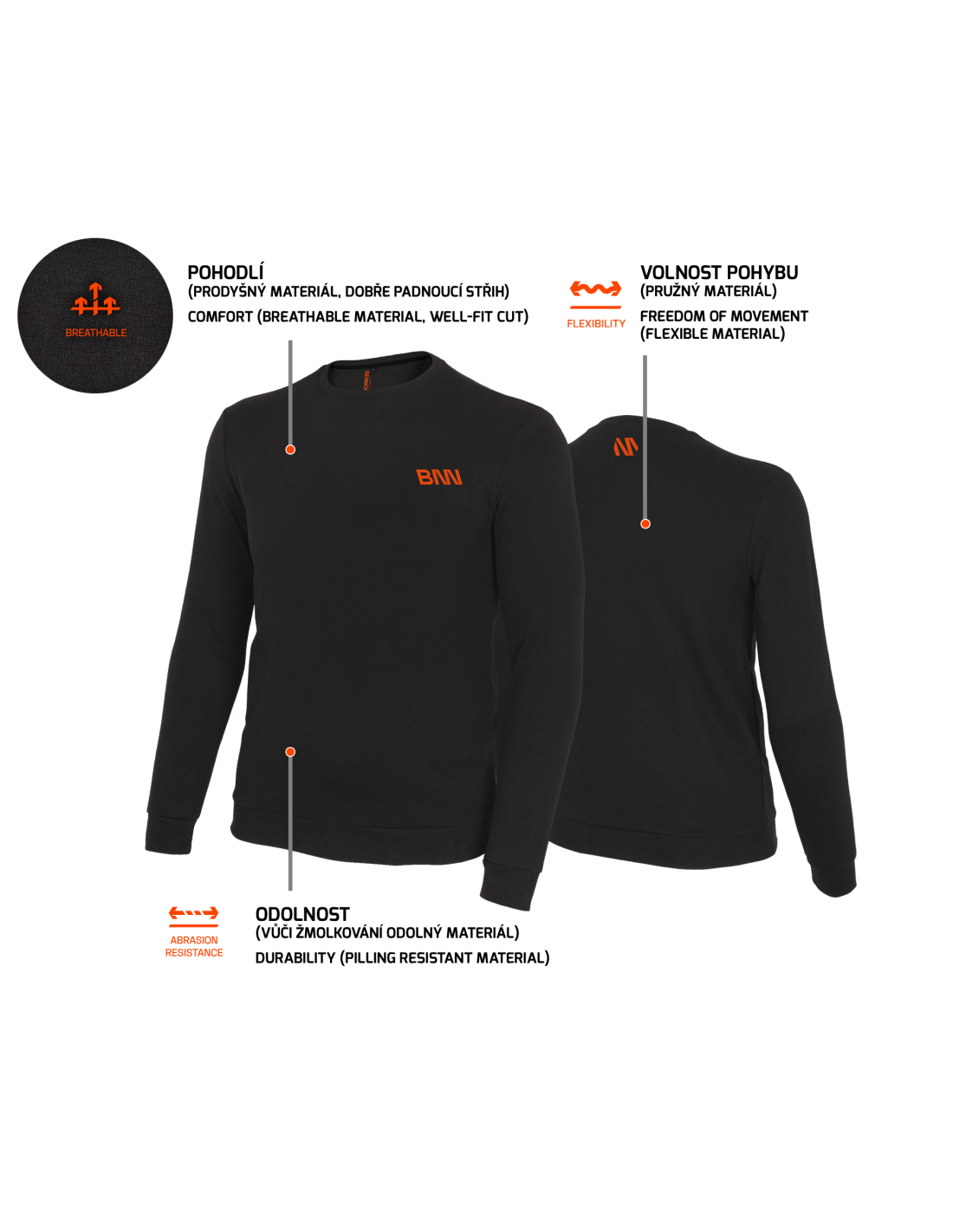 Wygodna bluza męska w kolorze czarnym. Zalety bluzy ProM MYKONOS: oddychalność i elastyczność przyjemny, bardzo wytrzymały, wysokiej jakości materiał 3 razy większa odporność na uszkodzenia mechaniczne niż określona w normie (odporność na mechacenie) dobrze dopasowany krój Dzięki tym cechom bluzę można nosić zarówno w pracy, jak i w czasie wolnym.
