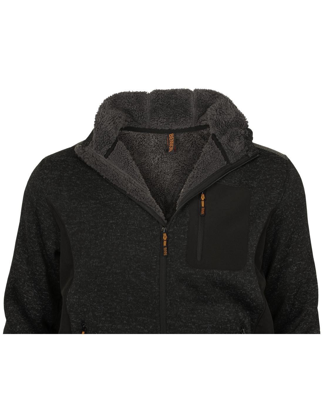 Wygodna bluza wykonana z połączenia kilku materiałów sztuczne futro zapewnia komfort termiczny i nie ogranicza ruchów przedłużona długość pleców boczne kieszenie oraz kieszeń na klatce piersiowej zamykane zamkiem błyskawicznym regulowany kaptur regulowany obwód w pasie rękawy regulowane na rzep elementy odblaskowe dla lepszej widoczności