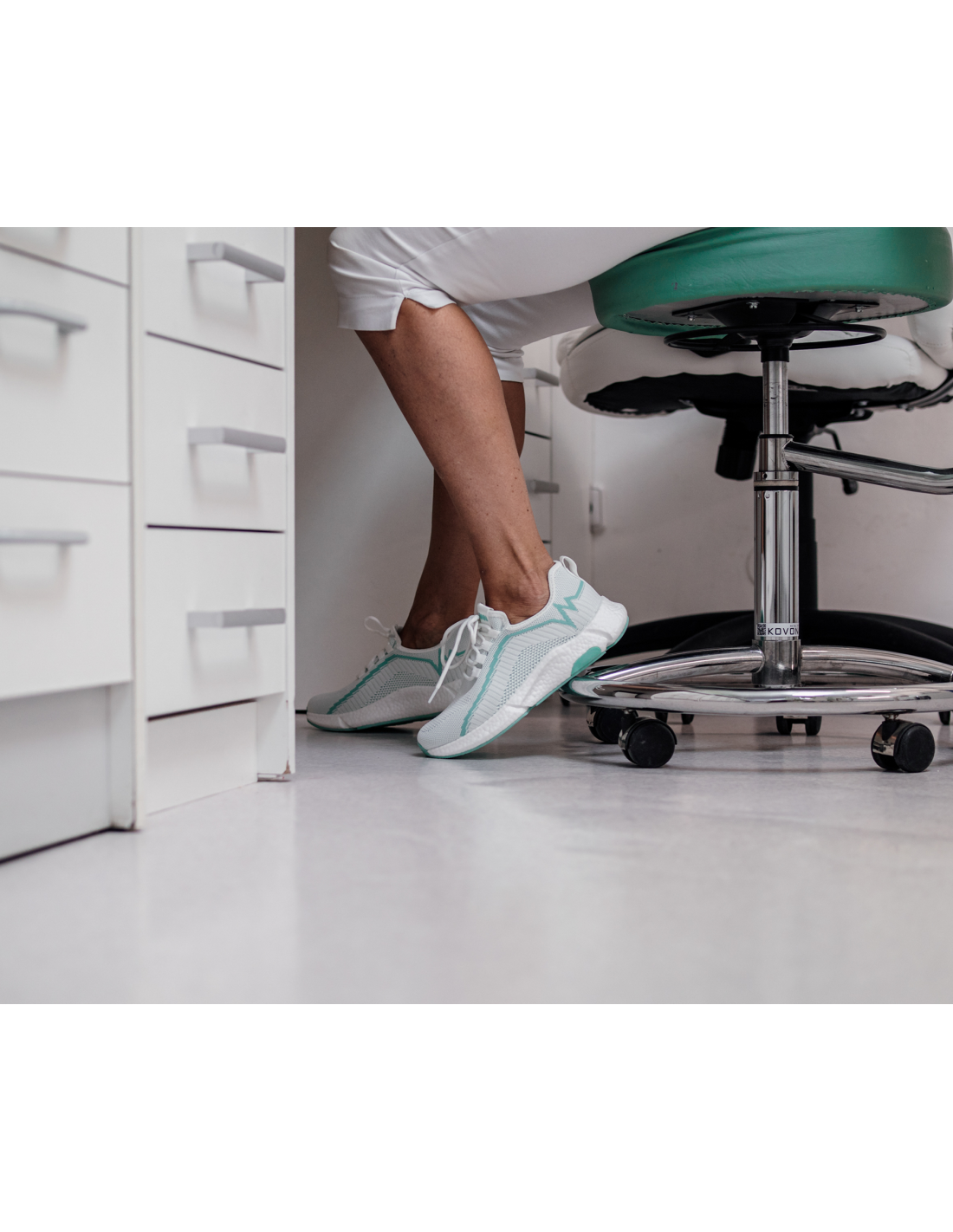 Ultralekkie, oddychające, bardzo wygodne półbuty z szerszą podeszwą, która zapewnia bardzo dobrą stabilność podczas chodzenia oraz posiada właściwości antypoślizgowe SRA, co zapewnia większe bezpieczeństwo użytkownika.   Wysokiej jakości lekka podeszwa z innowacyjną technologią eCorn ma o 60% większy efekt tłumienia wstrząsów podczas chodzenia i podczas długotrwałego stania niż inne powszechnie stosowane technologie. Amortyzuje wstrząsy kości piętowej jednocześnie chroniąc mięśnie stóp i nóg.   Na zewnętrznej stronie podeszwy umieszczony jest dodatkowy element wykonany z TPU, który zapobiega nadmiernemu zniekształceniu (supinacji) stopy, pomaga lepiej utrzymać stopę w prawidłowej pozycji, przyczynia się do lepszego jej wyważenia i optymalizuje odbicie stopy od powierzchni.   Ogromną zaletą tego buta, która sprawia, że noszenie go jest przyjemniejsze dla użytkownika, jest bardzo dobra oddychalność cholewki wykonanej z materiału MESH 3D. Powietrze może cyrkulować między wnętrzem buta, a otoczeniem: skóra na stopach lepiej oddycha i dłużej pozostaje świeża.   Dodatkowo cholewka buta reaguje na kształt stopy, dopasowując się do jej kształtu i zapewnia pełny komfort dla użytkownika.   Zaletą użytego materiału jest to, że w przypadku zabrudzenia można go prać w temperaturze 30°C (bez użycia środków chemicznych) oraz szybki czas jego schnięcia.   Przyjemne uczucie świeżości podczas noszenia jest dodatkowo wzmocnione przez wkładkę Carbona, która zawiera węgiel aktywny, który ma działanie antybakteryjne i pochłania zapach.   But jest odpowiedni dla osób pracujących „na nogach” przez długi czas i potrzebujących lekkich, oddychających, wygodnych butów do noszenia przez cały dzień.   Docenią je np. lekarze i pielęgniarki, pracownicy laboratoriów, farmaceuci, przewoźnicy w logistyce, doręczyciele w usługach pocztowych, kelnerzy w branży hotelarskiej, przewodnicy wycieczek itp.