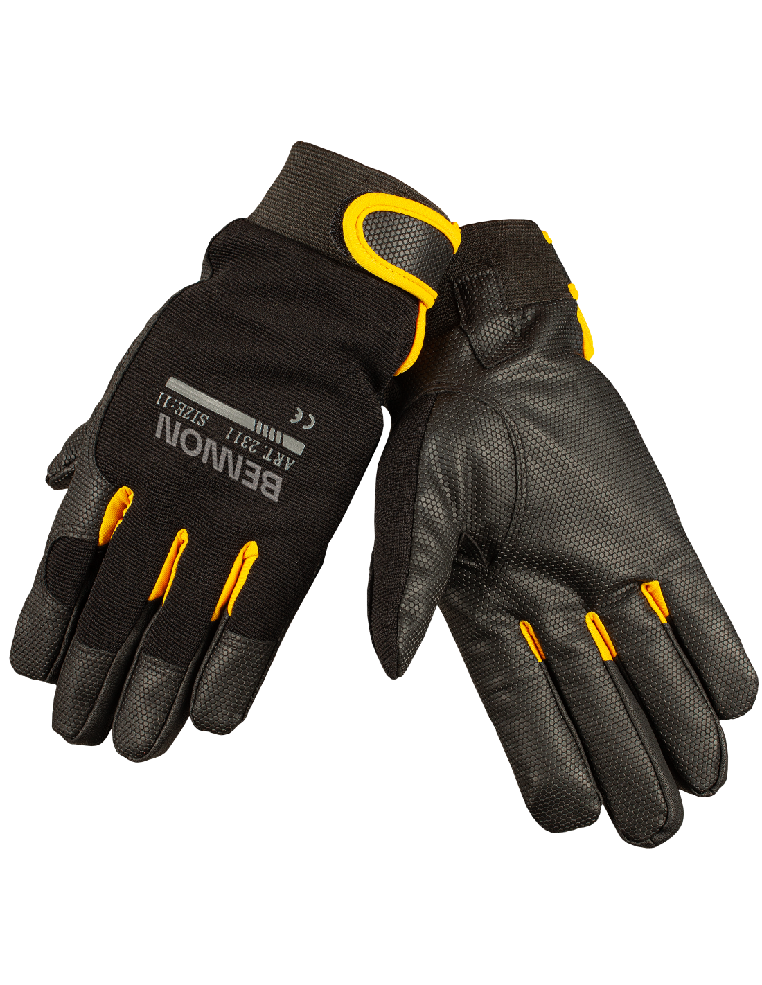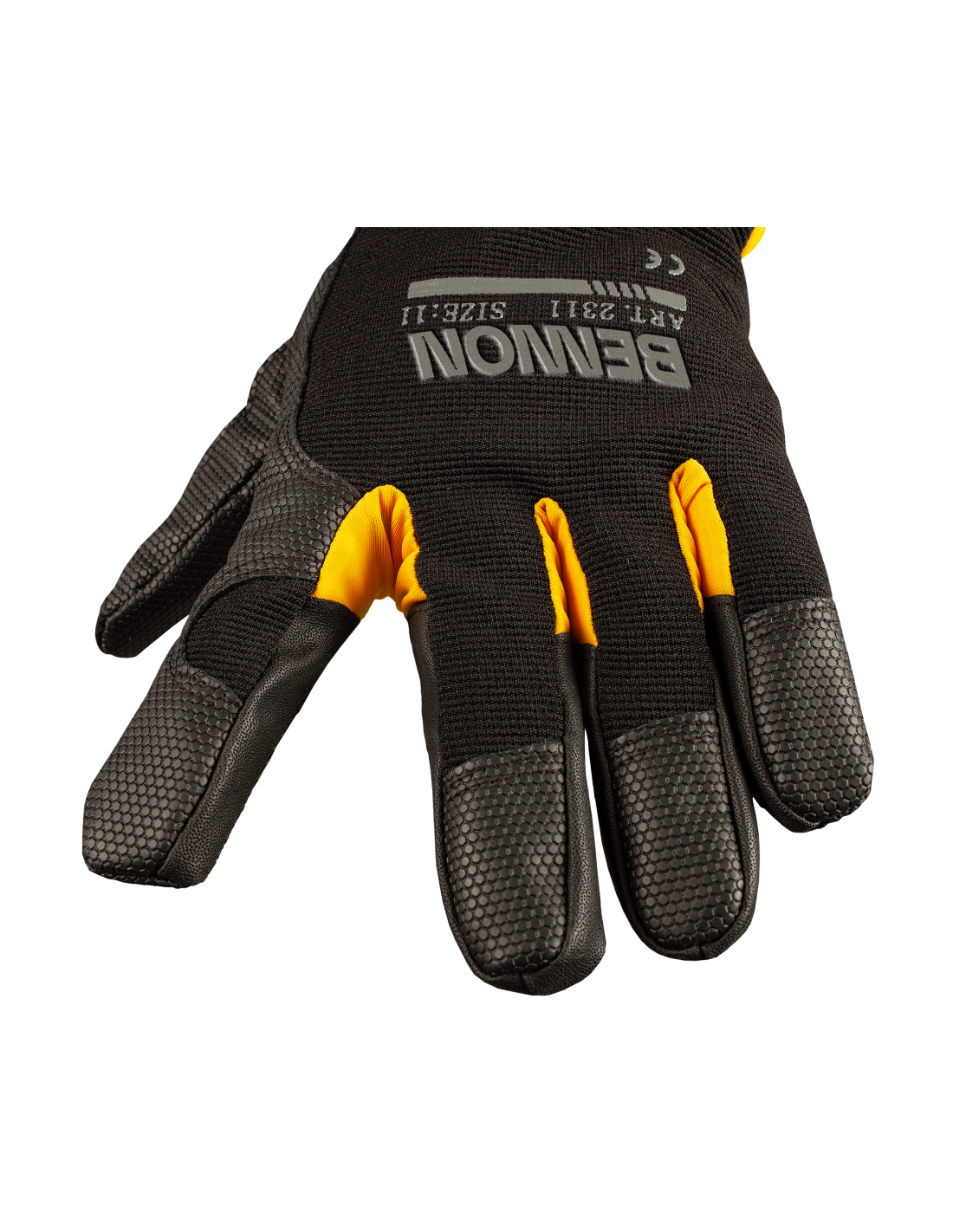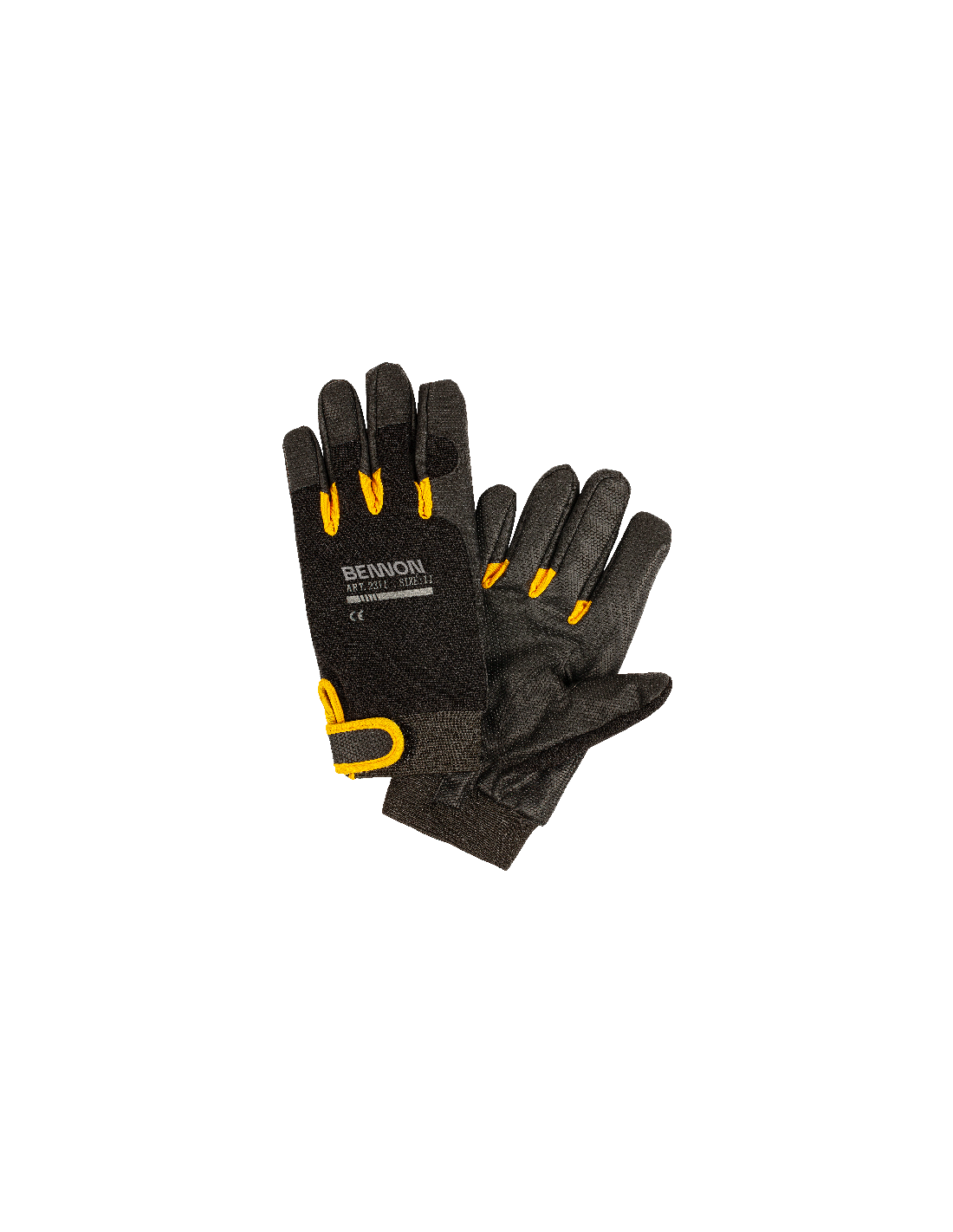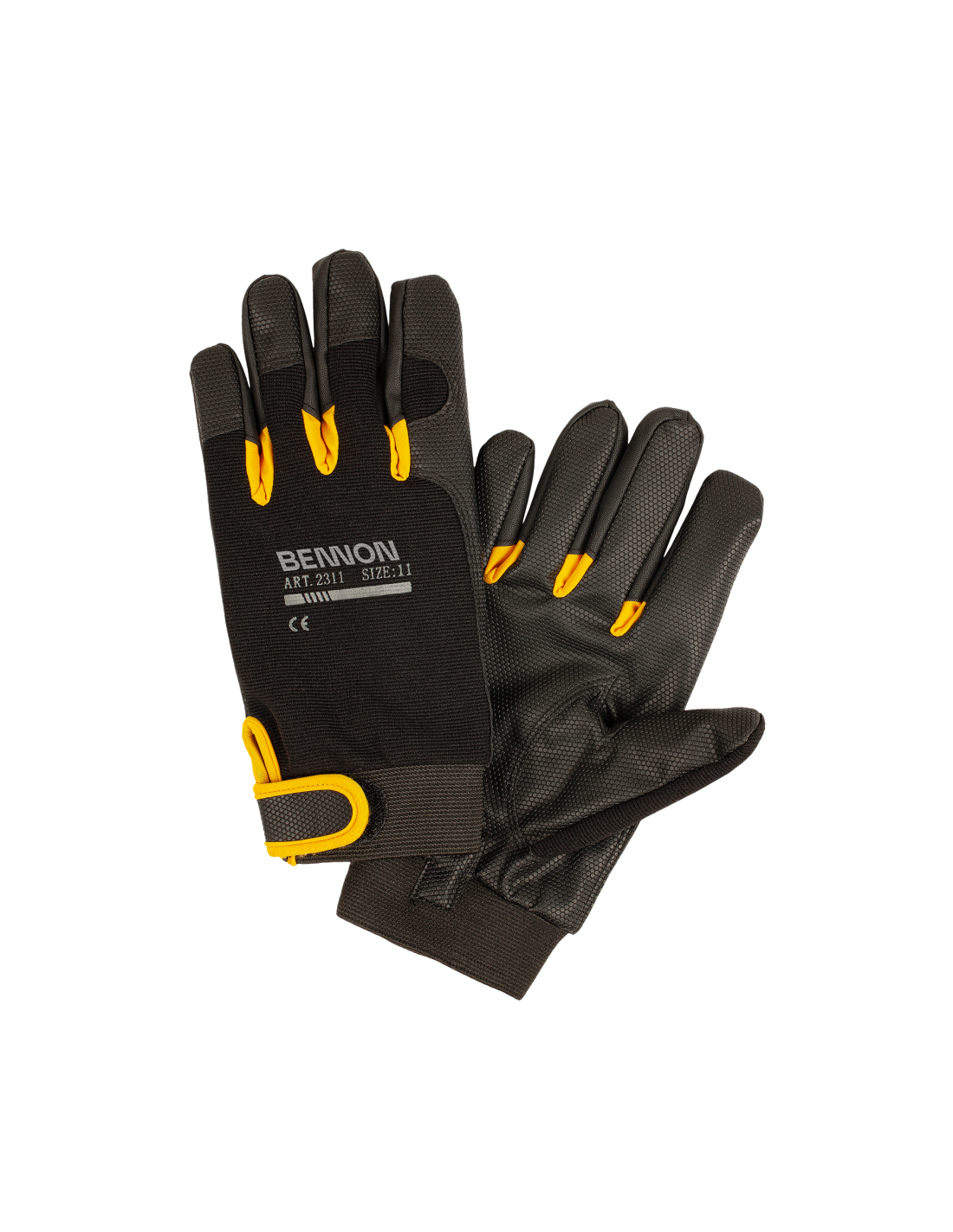 Trwałe, ciepłe, a jednocześnie bardzo elastyczne, wygodne rękawice robocze, które wyróżniają się doskonałym chwytem i zapewniają dobrą mobilność dłoni i palców. W obszarze między palcami, a górną częścią rękawic zastosowano elastyczny i oddychający materiał ograniczający pocenie się dłoni, dzięki czemu rękawice zapewniają nie tylko dobrą motorykę, ale także dłuższe uczucie świeżych dłoni. W okolicy opuszków palców znajduje się materiałowe wzmocnienie, które chroni tę wrażliwą część dłoni przed uszkodzeniami mechanicznymi. Dolna część przy palcach rękawic posiada strukturę materiału, która umożliwia wygodne i precyzyjne sterowanie dotykiem telefonu komórkowego. Inne przydatne właściwości tych rękawic to wodoodporność - woda spływa z rękawic, wilgoć nie wnika do środka. Jeśli chodzi o mocowanie rękawic, zastosowano tutaj trwałe, sprawdzone rozwiązanie - zapinanie na rzep. Dodatkowo cała okolica nadgarstka wykonana jest z bardzo przyjemnego w dotyku i wytrzymałego materiału jakim jest neopren. Aby poprawić wytrzymałość okolicy nadgarstka nawet podczas forsownej pracy i częstego noszenia rękawiczek, wszyto tam część wzmacniającą. Podczas pracy w chłodnym otoczeniu dużym atutem jest bardzo przyjemna wyściółka z mikrofibry, która ogrzewa dłonie i tym samym zwiększa komfort termiczny użytkownika. Te rękawice robocze znajdą zatem zastosowanie w budownictwie, przemyśle, rolnictwie, w zawodach rzemieślniczych, logistyce, ale także w zastosowaniach hobbystycznych.