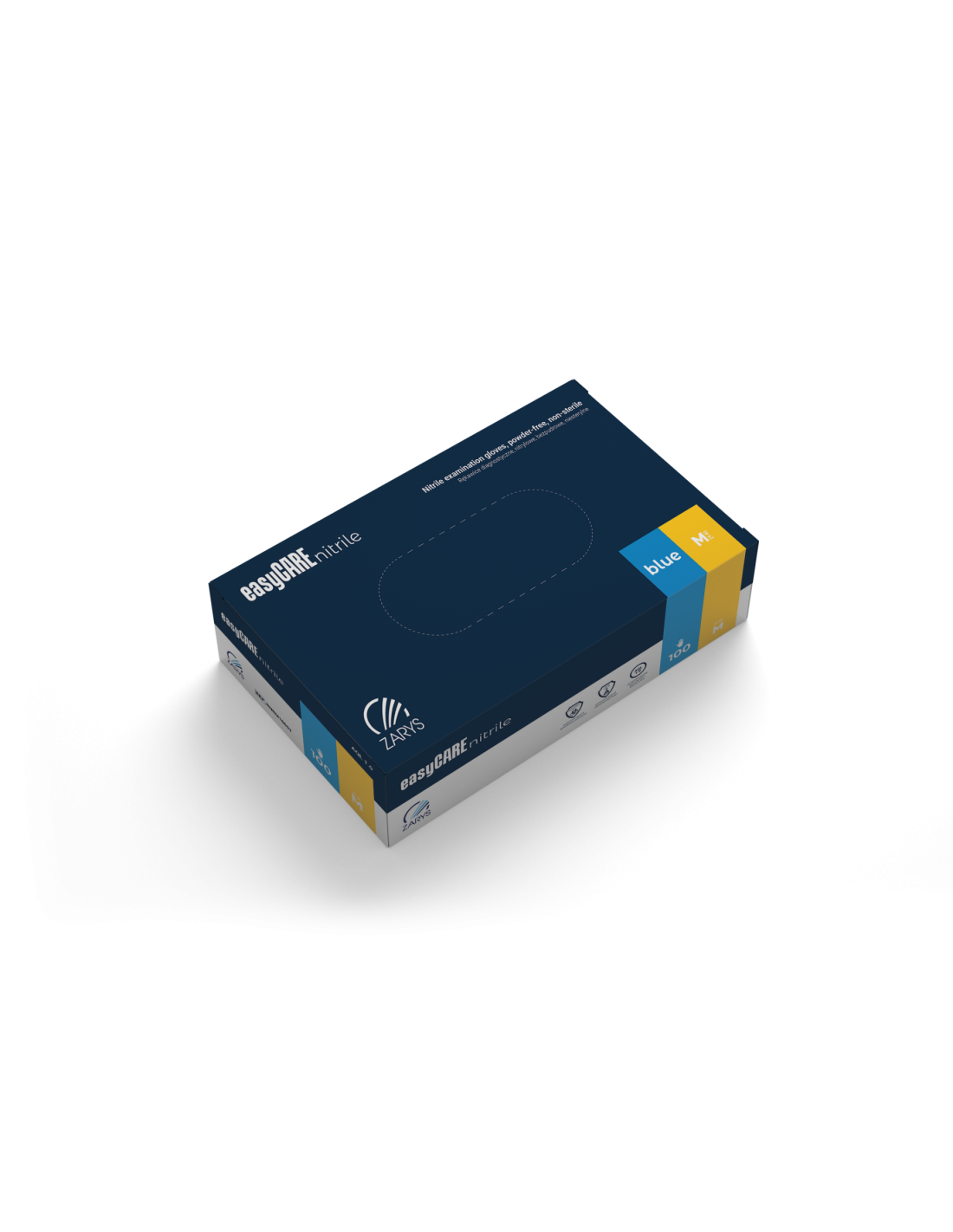 Jednorazowe, nitrylowe rękawice diagnostyczne z rolowanym mankietem. Produkt cechuje chlorowana i polimerowana powierzchnia wewnętrzna, a z zewnątrz tekstura polimerowana i teksturowana na końcach palców. Wyrób niesterylny i bezpudrowy, zgodny z normami technicznymi, dopuszczony do kontaktu z żywnością.