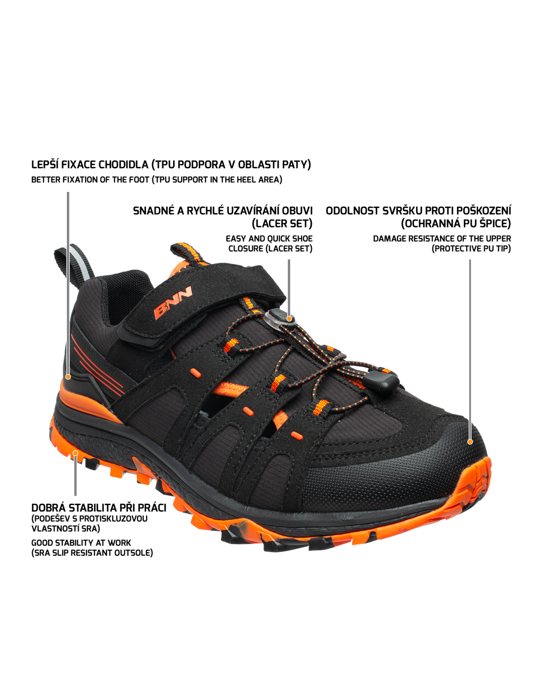 Wygodne sandały o nowoczesnym sportowym wyglądzie, przeznaczone do pracy i wypoczynku. Obuwie posiada element ochrony palców, która zapobiega uszkodzeniom oraz podeszwę o właściwościach antypoślizgowych SRA dla lepszej stabilności. Zalecane użycie: suche środowisko zewnętrzne, suche przestrzenie wewnętrzne