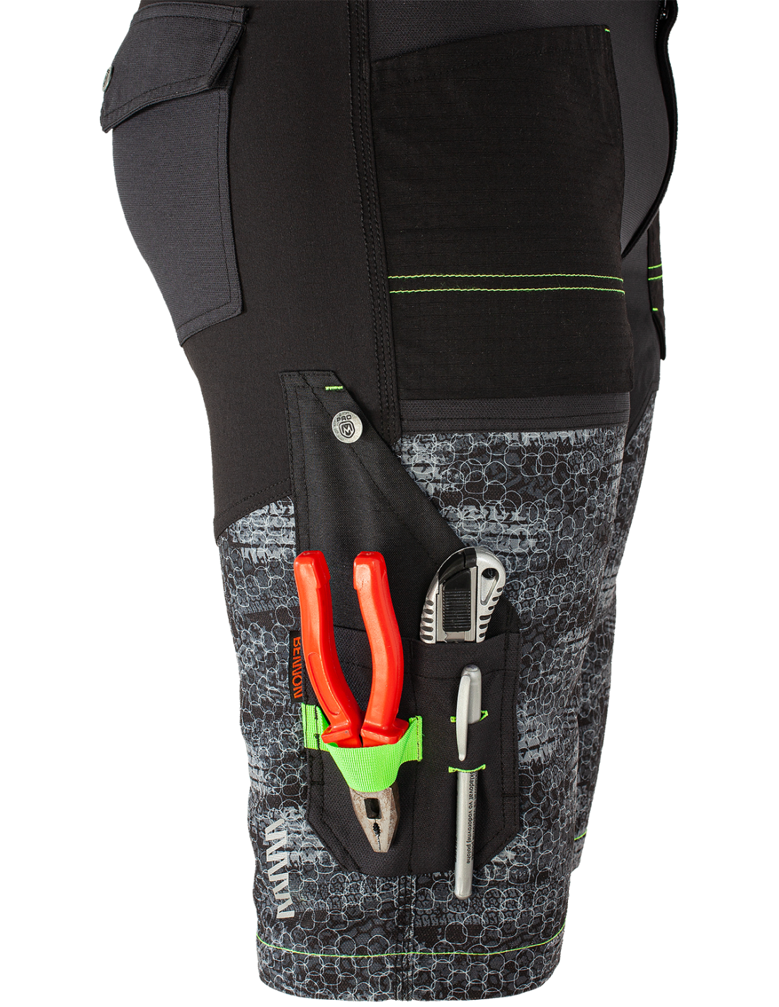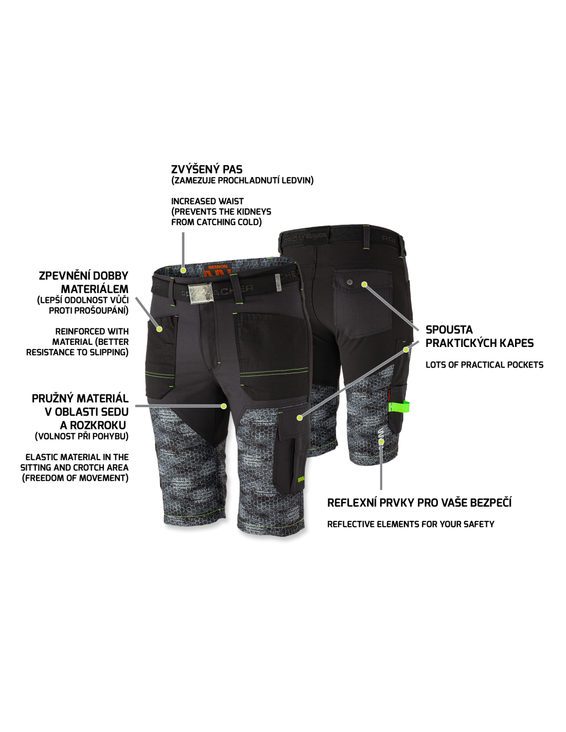 Przedsprzedaż:22. 9. – 21. 12. 2022 – 10% rabatu22. 12. 2022 – do daty dostawy na magazyn – 5% rabatu Wygodne męskie strechowe spodenki robocze z praktycznym wzorem kamuflażu • bardzo mocny, wytrzymały i elastyczny materiał w okolicy pośladków i krocza, zapewniający swobodę podczas aktywności fizycznej • wzmocnienie z materiału Cordura dla większej odporności na przetarcia • odpinane kieszenie na narzędzia • kieszenie na śrubokręty, gwoździe i młotki • kieszeń na składaną linijkę • kieszeń na telefon komórkowy • pętle do zawieszania narzędzi • tekstylna etykieta z tabliczką znamionową • elementy odblaskowe dla zwiękaszenia bezpieczeństwa w półmroku i ciemności Po prostu wygodne, nowoczesne szorty robocze przeznaczone do pracy oraz różnych aktywności Zalecane zastosowanie: praca w pomieszczeniach i na zewnątrz