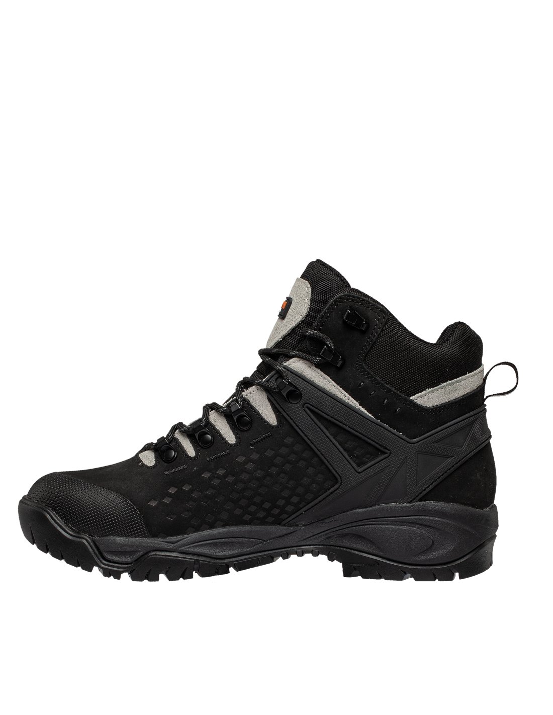 Wygodne buty trekkingowe z doskonałym mocowaniem w okolicy kostki. Buty wyposażone są w wodoodporną membranę REGI-TEX, która chroni stopy przed wilgocią i niepogodą. Dodatkowa ochronna z TPU w części piętowej, zapewnia maksymalne bezpieczeństwo i lepszą stabilność podczas chodzenia. Powłoka TPU zwiększa wytrzymałość noska podczas chodzenia w trudnym terenie (ochrona przed otarciom). Podeszwa Vibram 187C posiada właściwości antypoślizgowe SRC, dodatkowo jest odporna na ciepło kontaktowe. Buty posiadają elementy odblaskowe.   Zastosowanie: buty robocze, obuwie na co dzień oraz do zajęć na świeżym powietrzu Obuwie jest certyfikowane jako obuwie robocze zgodnie z normą EN ISO 20347:2012 O2 SRC FO HRO WR CI
