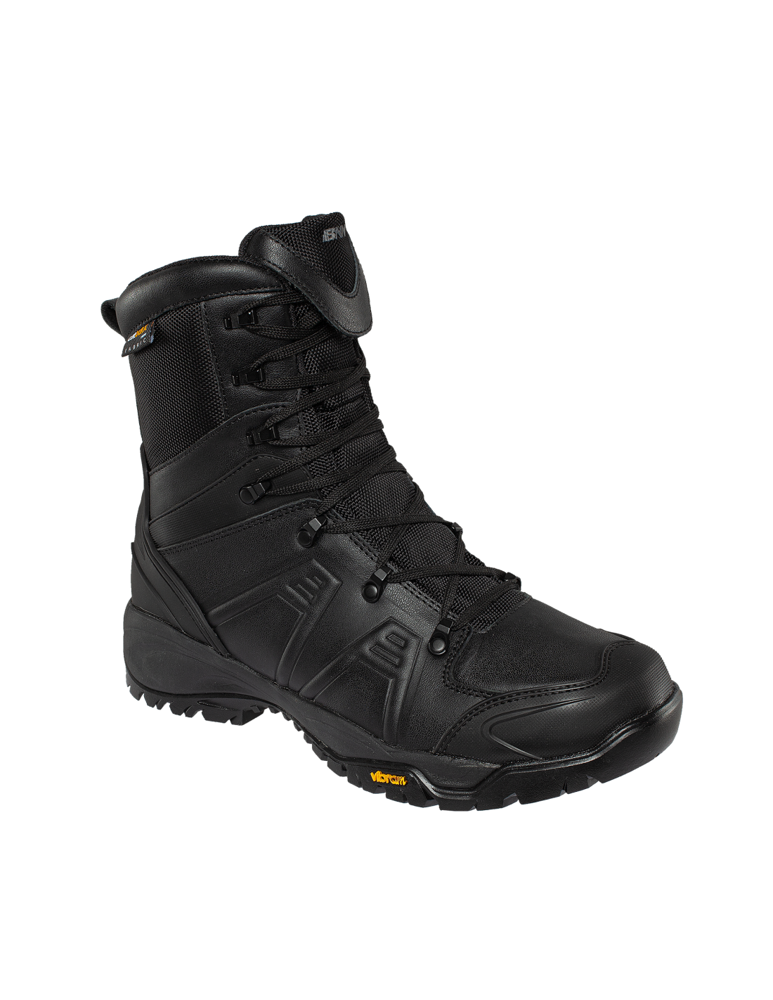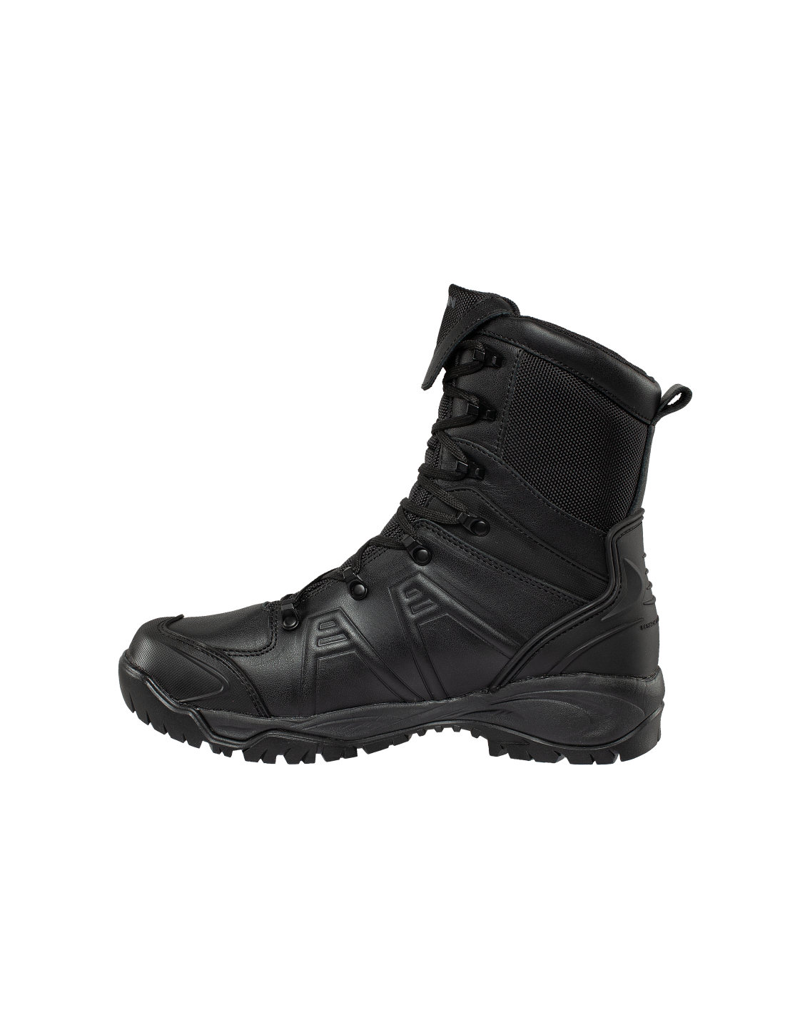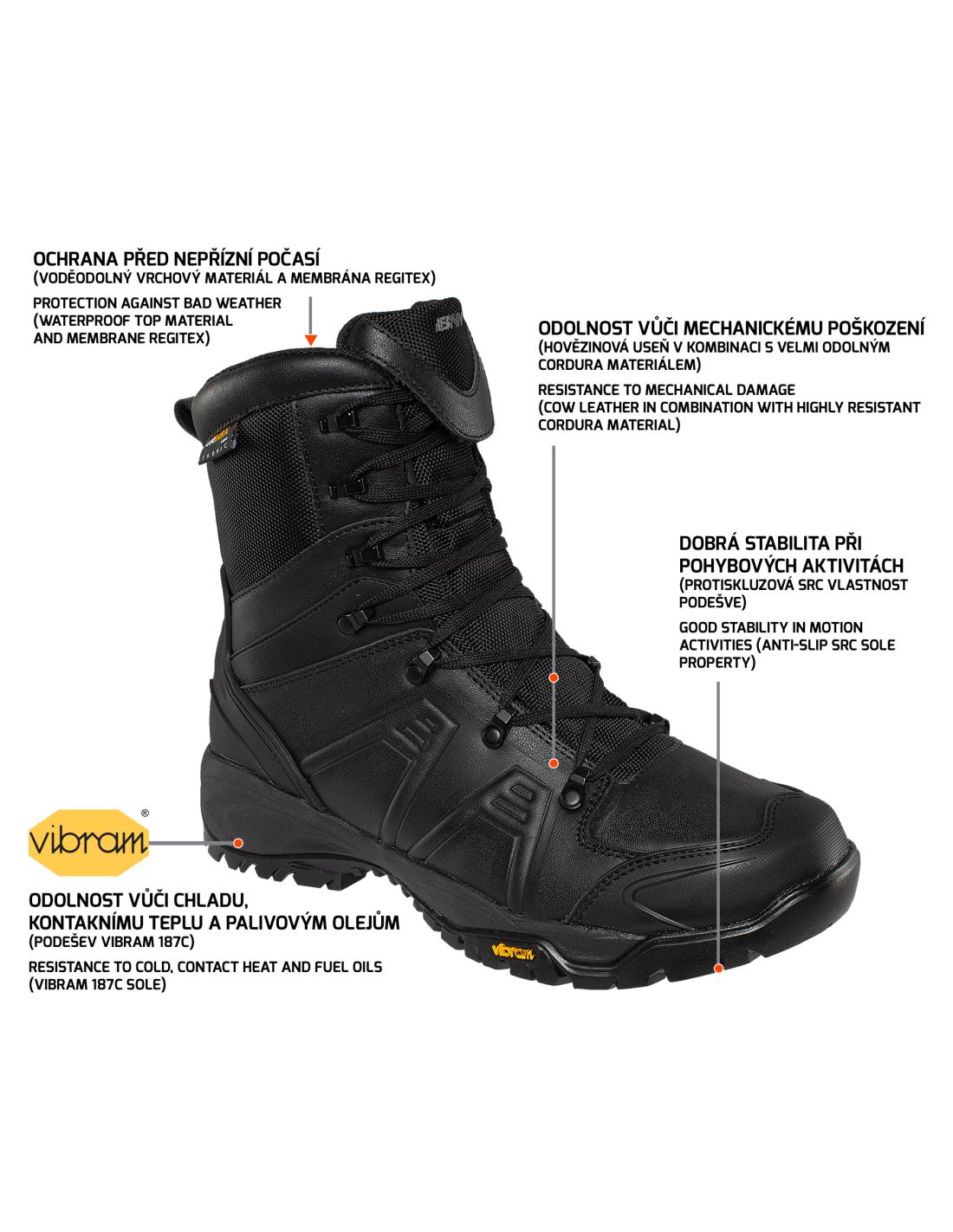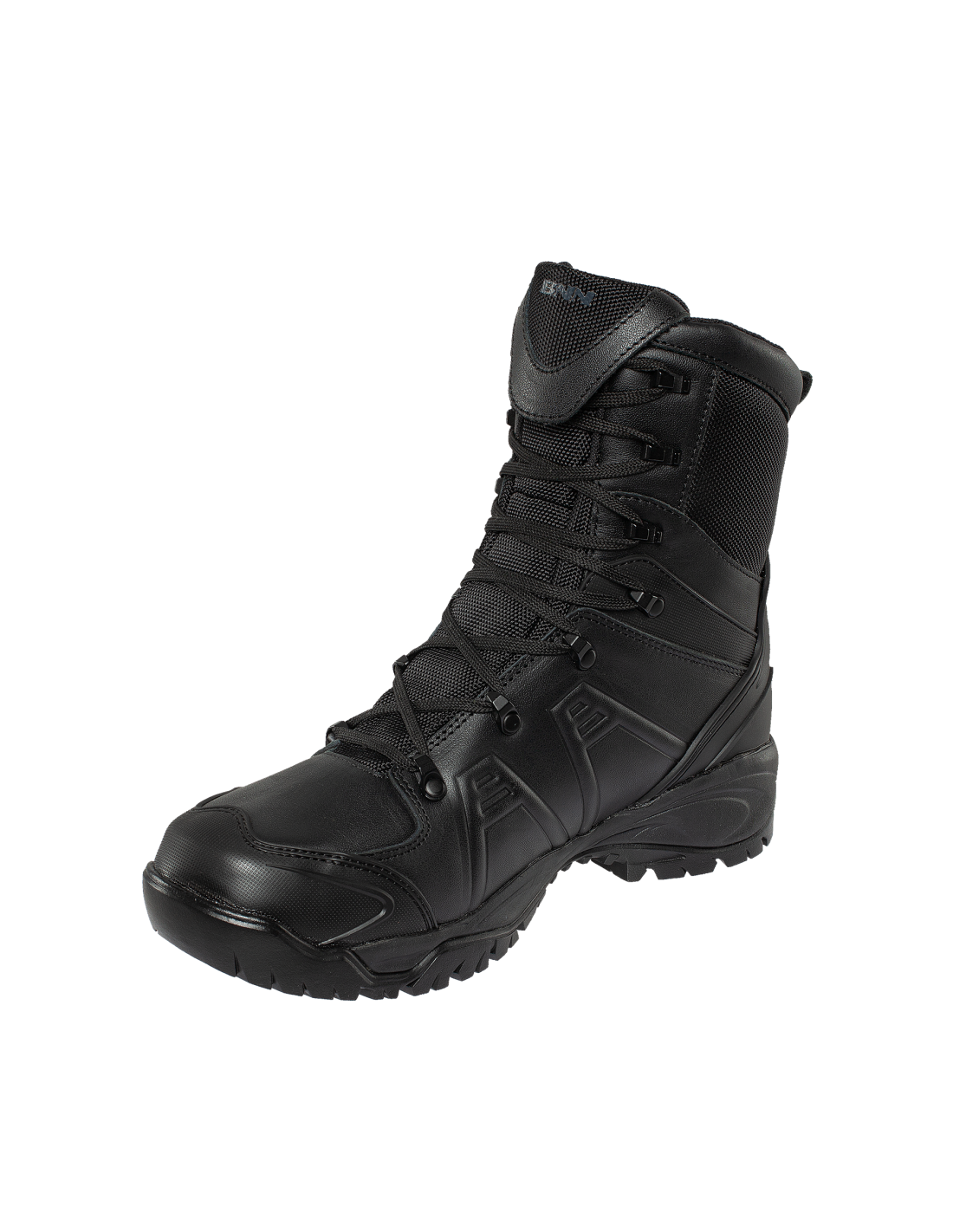 BNN PANTHER XTR O2 Boot to bardzo wytrzymałe obuwie taktyczne, wykonane ze skóry bydlęcej i niezwykle mocnego materiału Cordura. Wodoodporna cholewka z gumową ochroną na czubku. Wodoodporna membrana REGI-TEX zapewnia ochronę przed wilgocią wewnątrz obuwia nawet w wymagających warunkach. Wkładka ABSORBA XTR z dodatkiem węgla aktywnego, eliminuje ewentualne nieprzyjemne zapachy. Kolejną zaletą tego obuwia jest zdolność pochłaniania energii (wstrząsów) w okolicy pięty, co zapewnia komfort nawet przy dłuższym użytkowaniu. Podeszwa Vibram 187C jest odporna na ciepło kontaktowe, zimno oraz na materiały ropopochodne. Dodatkowo posiada właściwości antypoślizgowe SRC, co w połączeniu z elementem z TPU na pięcie, zapewnia bardzo dobrą stabilność podczas chodzenia i innych aktywności fizycznych. Praktyczną cechą tego obuwia jest kieszeń umieszczona na języku buta, która umożliwia schowanie sznurowadeł. Zalecane zastosowanie: obuwie dla służ mundurowych, przeznaczone do uniwersalnego użytku przez cały rok.