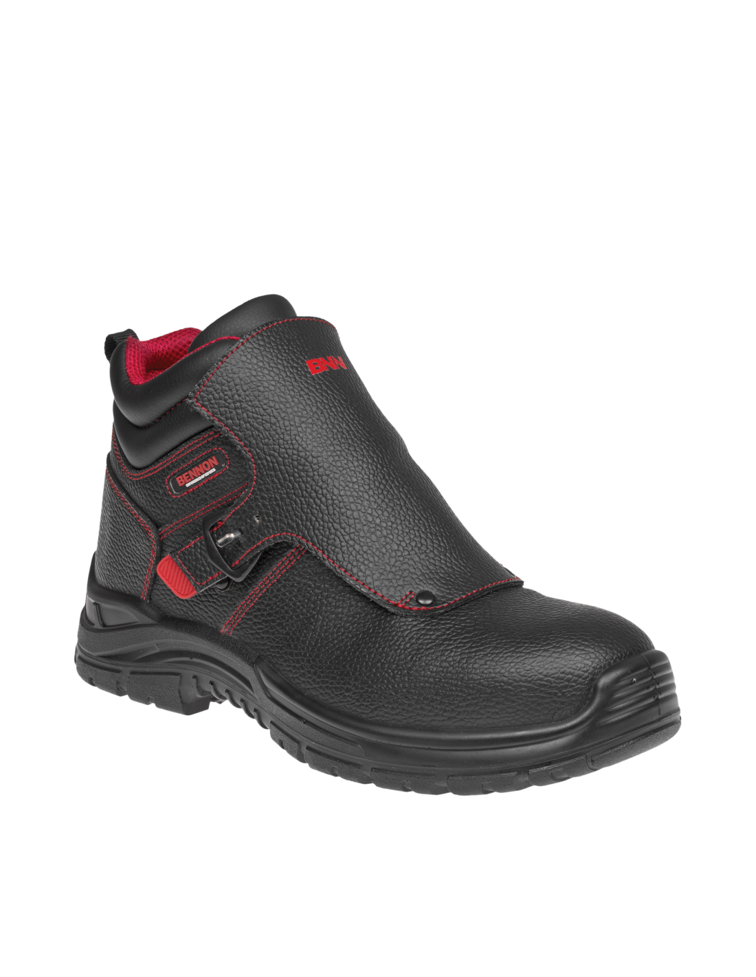 Specjalistyczne obuwie dla spawaczy z systemem do szybkiego zdejmowania. Dwuwarstwowa podeszwa PU/guma. Antypoślizgowa podeszwa SRC odporna na krótkotrwały kontakt z gorącym podłożem (300 0C). Obuwie ochronne z podnoskiem stalowym i wkładką antyprzebiciową.