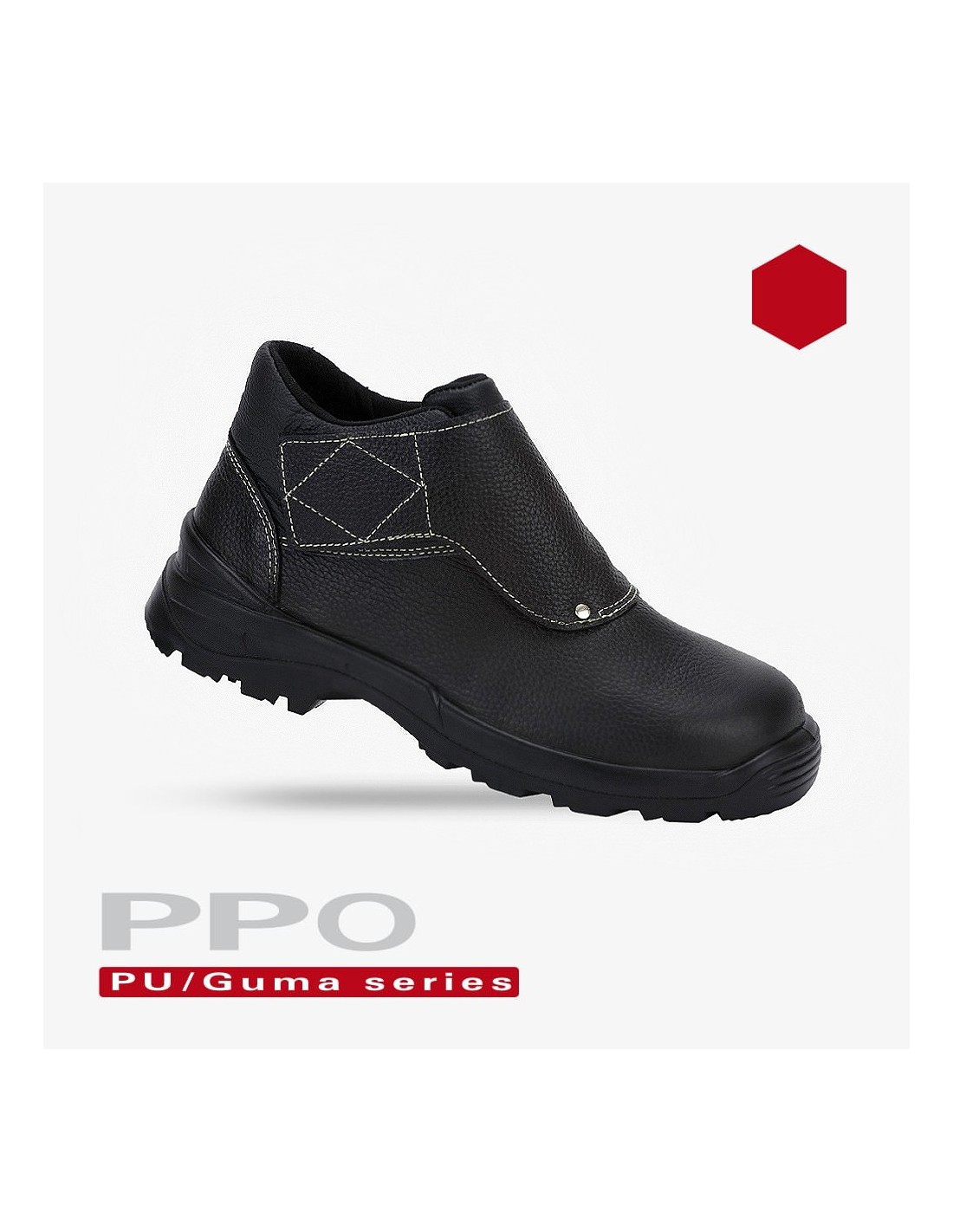 - dwuwarstwowa podeszwa PU/Guma odporna na oleje, benzynę, inne rozpuszczalniki organiczne, na styku z podłożem - warstwa gumowa, charakteryzująca się wysoką odpornością na ścieranie i przecinanie, rozcieńczone roztwory kwasów i zasad (30% H2SO4 i 20% NaOH) oraz temperaturę w krótkotrwałym kontakcie do 300°C. Warstwa wewnętrzna to spieniony poliuretan sprawiający, że obuwie jest lekkie, elastyczne i skutecznie łagodzi nierówności podłoża